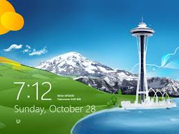 Windows 8 opens on its lock screen, which looks pretty but unfortunately displays no clues about what to do next.